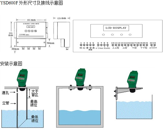 YSD600系列超聲波液位計產品可廣泛用于各種液體的液位和固體的物位測量,同時也可用于測距使用。是一種智能非接觸式液(物)位測量儀表。產品具有發射功率可調整,全量程內增益控制,自動溫度補償等功能,并采用先進的檢測和計算方法,提高了產品的測量精度及數據穩定性,能識別虛假信號,從而有效去除各種干擾信號。